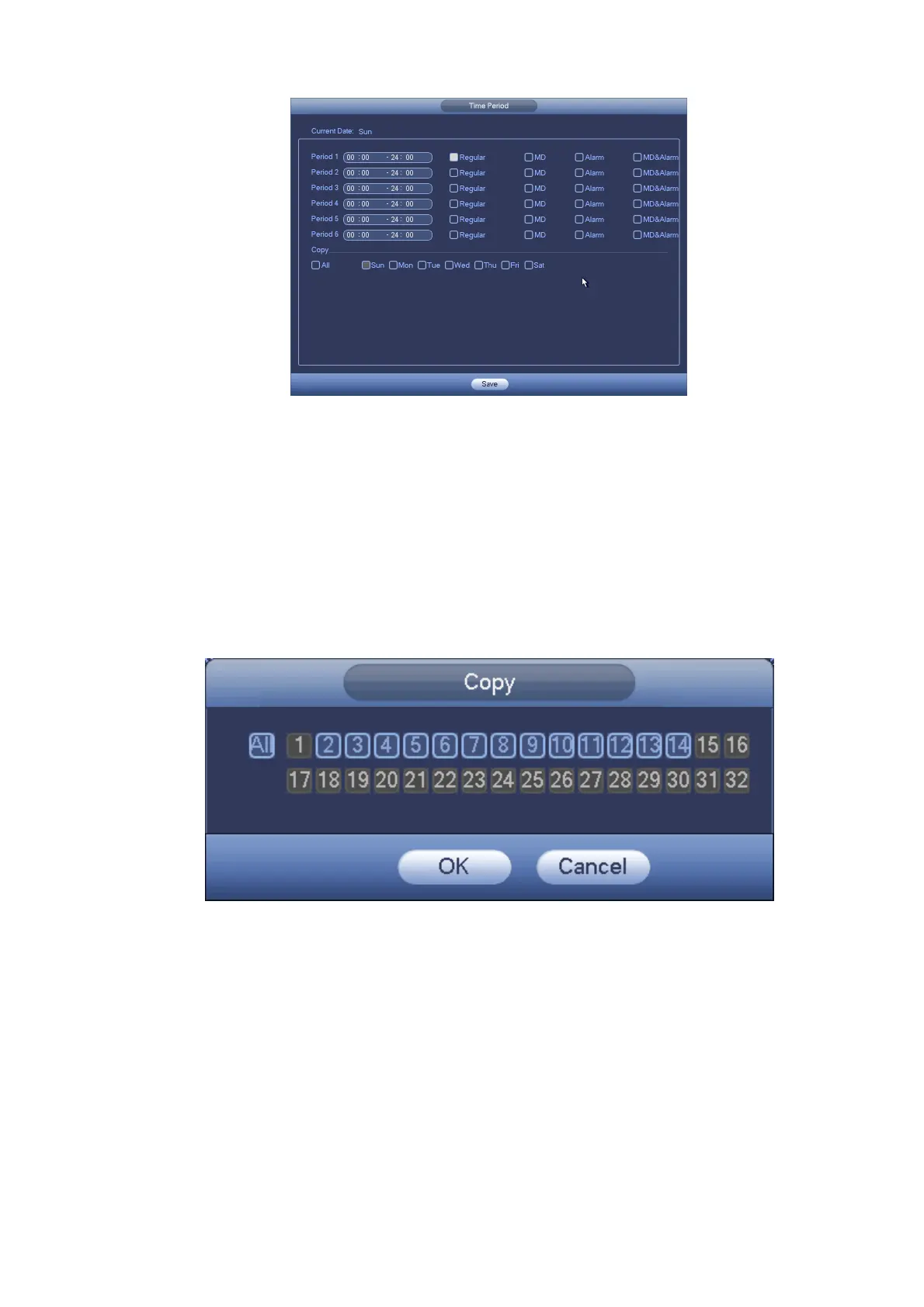 Please note, if you select ALL in Figure 4-67, the record setup of all channels are the same and the Copy