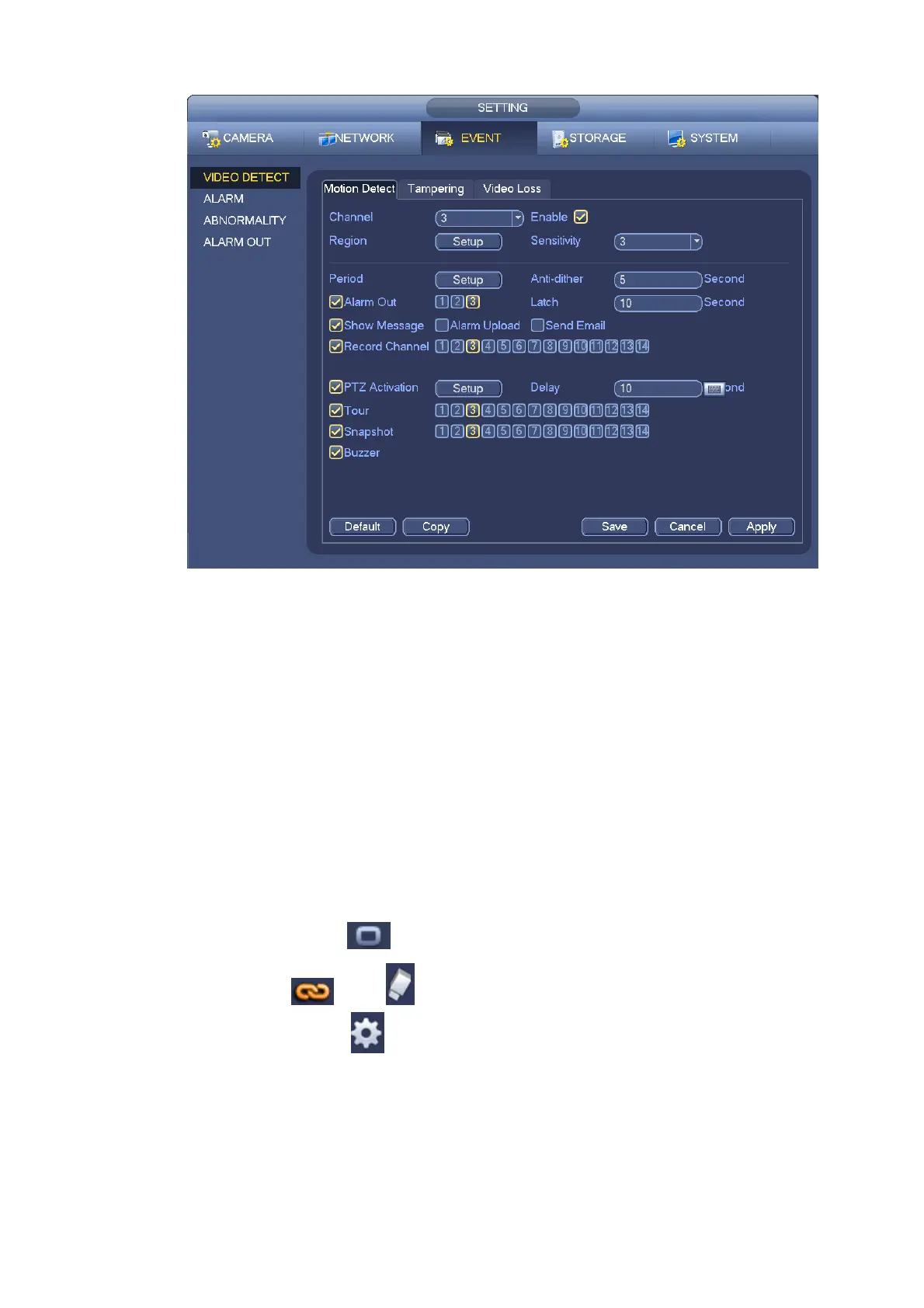 motion detect period. System only enables motion detect operation in the specified periods. It is