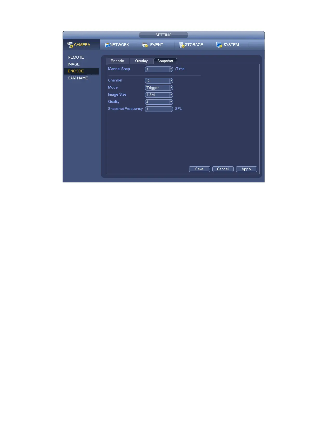In the main menu, from Setting->Event-> Alarm, you can see alarm setup interface. See Figure 4-75.