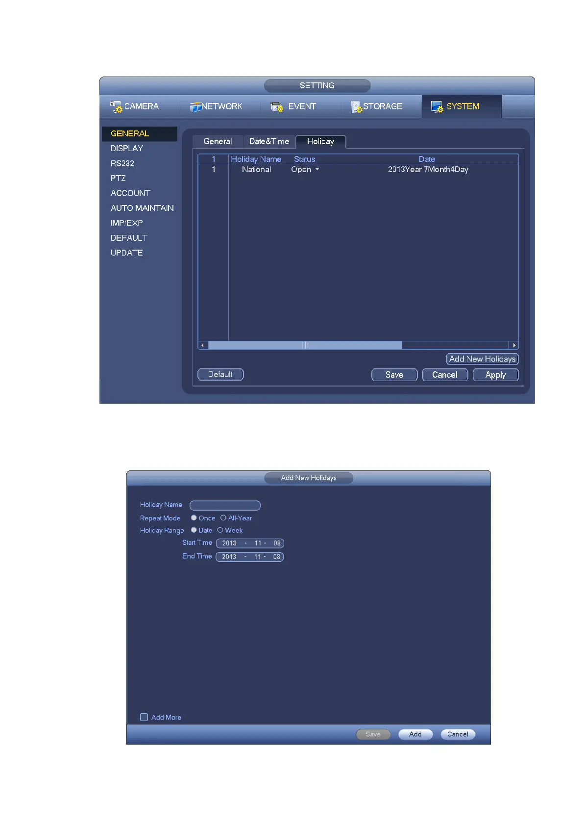 b) Click Add new holiday button, you can see an interface shown as in Figure 4-79. Here you can