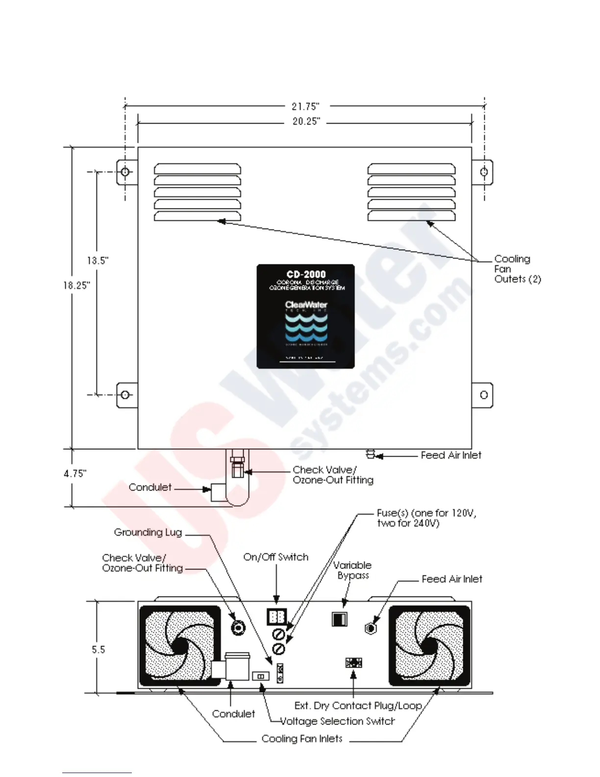 CD2000 OZONE GENERATOR DIMENSIONS AND LAYOUT