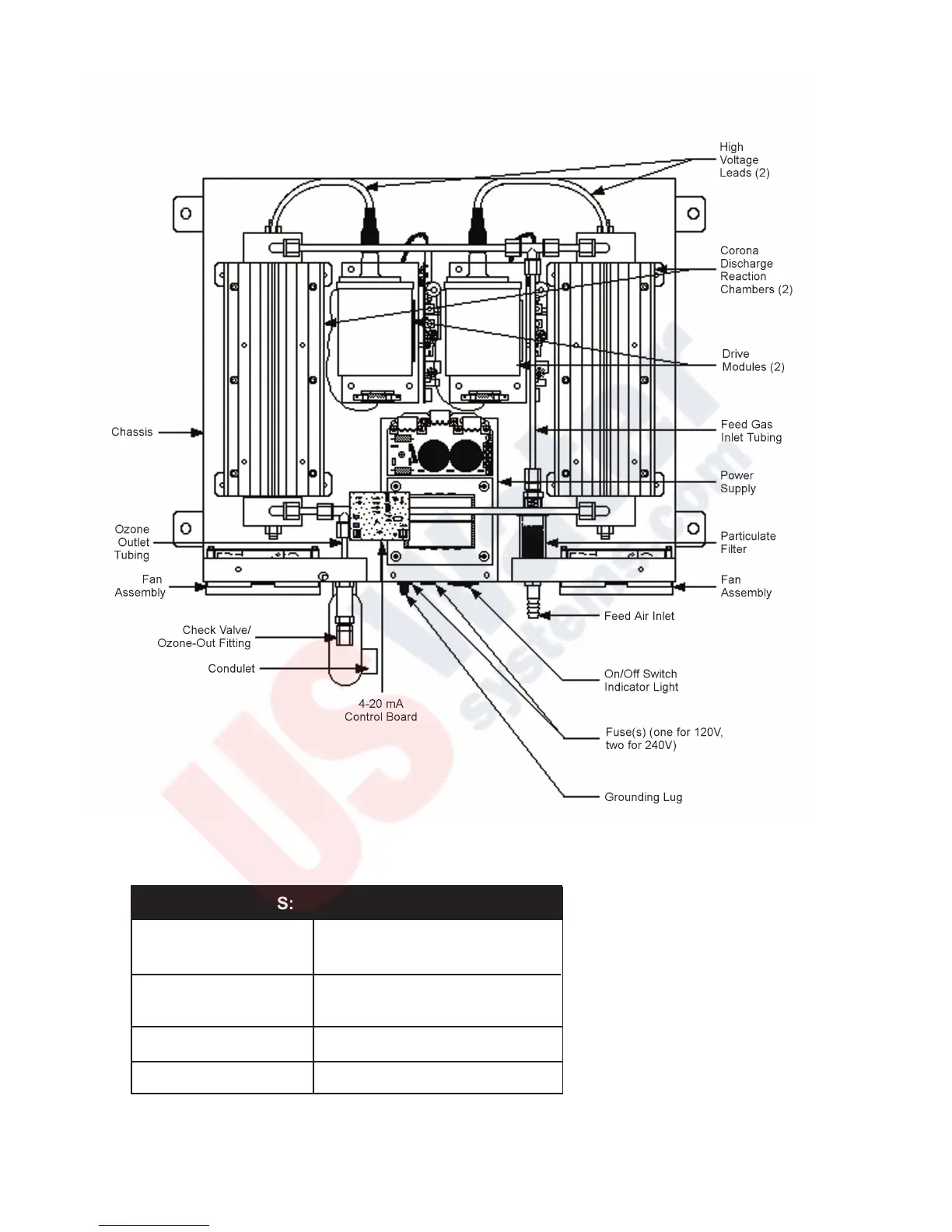 CD-2000 OZONE GENERATOR COMPONENTS