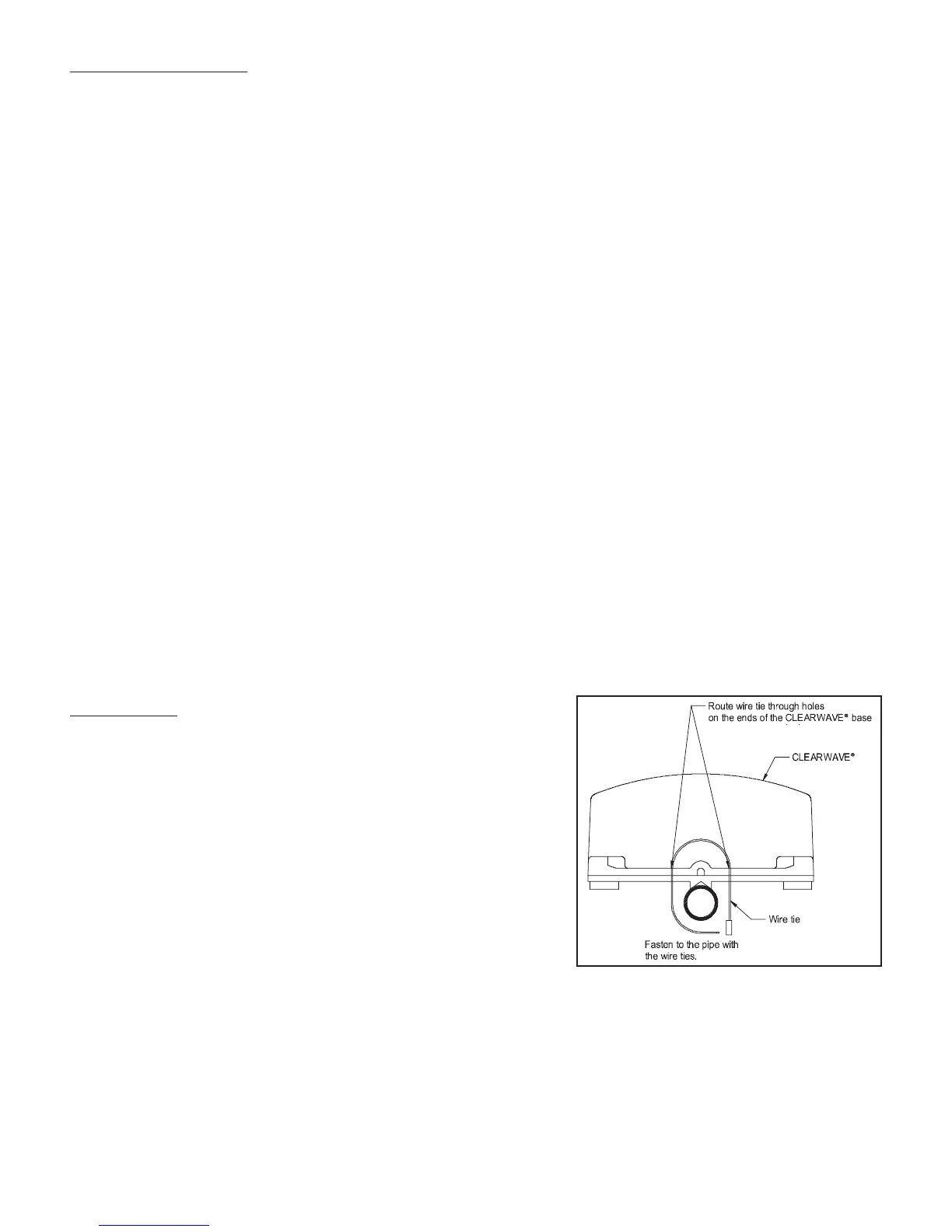 Mount the ClearWave onto the pipe by routing a wire tie through the two holes on each end of ClearWave