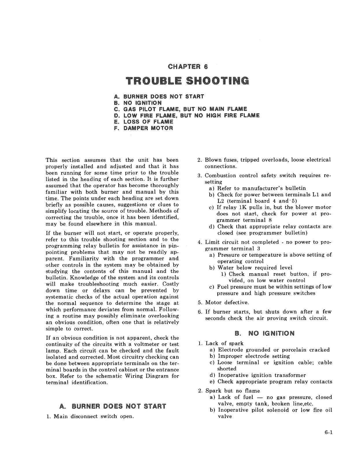 Cleaver-Brooks CBH 100 - Chapter 6: Troubleshooting Guide; Burner Fails to Start