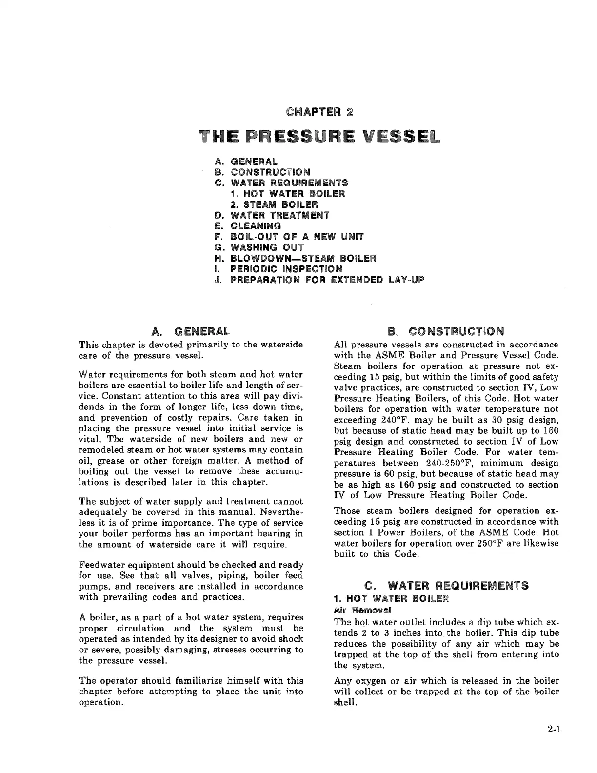 Cleaver-Brooks CBH 40 - Chapter 2 The Pressure Vessel; General; Construction; Water Requirements
