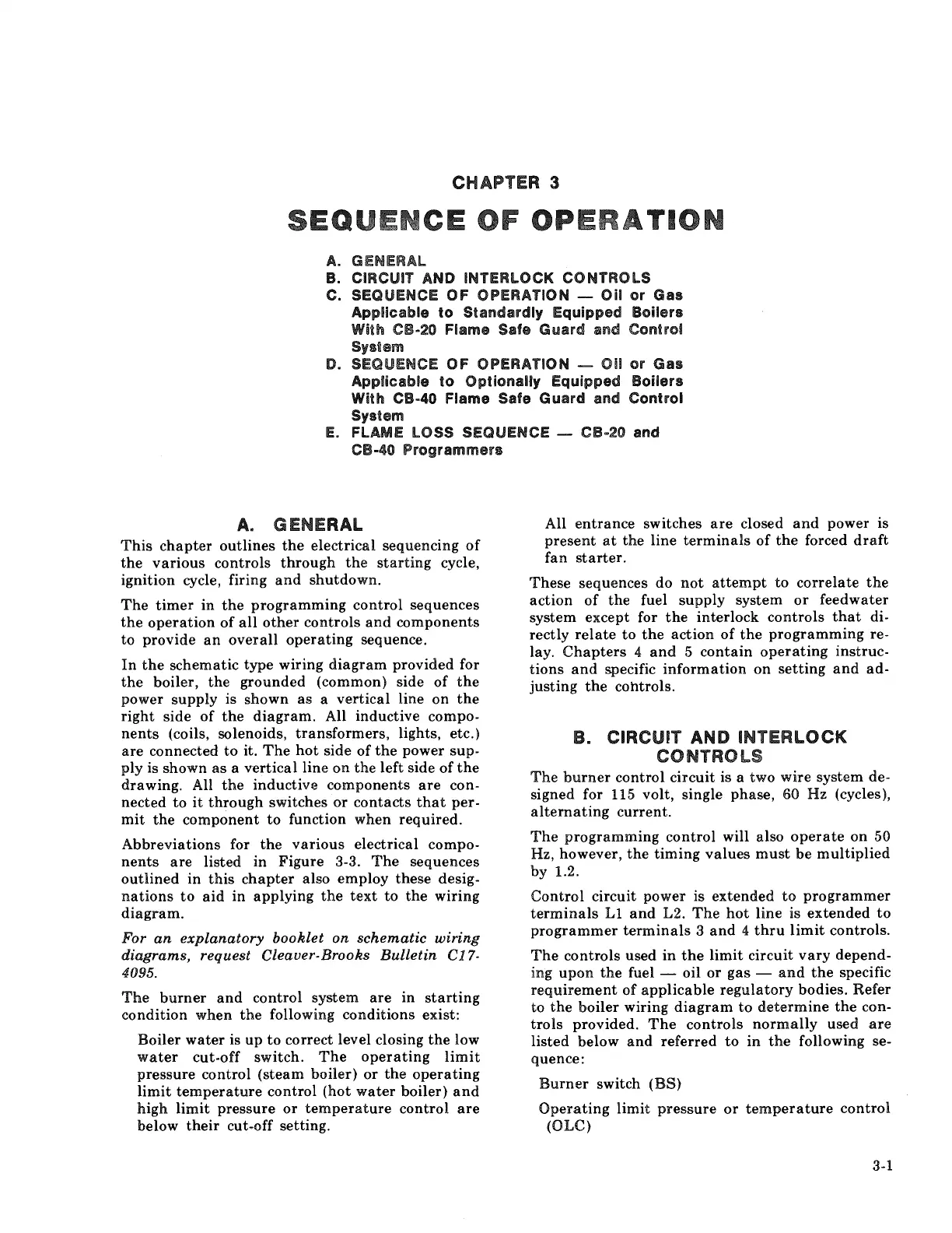 Cleaver-Brooks CBH 40 - Chapter 3 Sequence of Operation; General; Circuit and Interlock Controls
