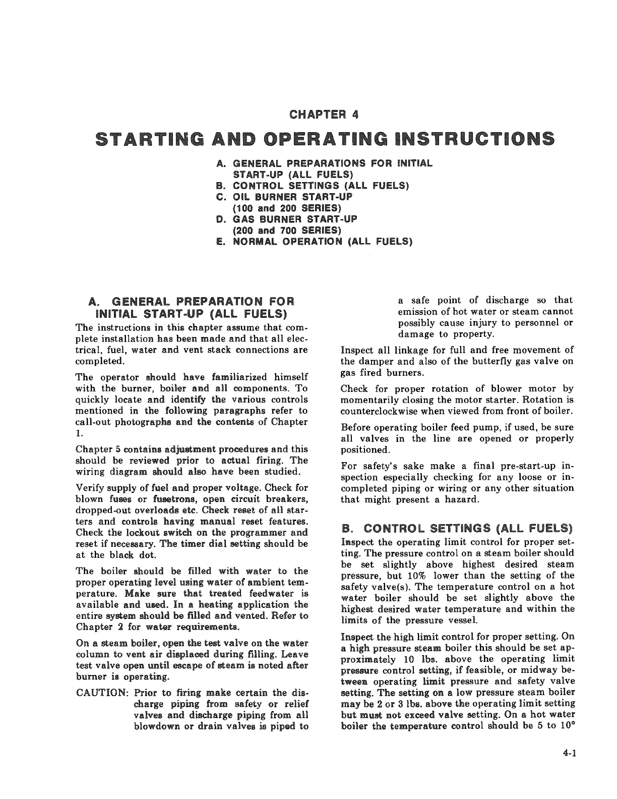 Cleaver-Brooks CBH 40 - Chapter 4 - Starting and Operating Instructions; General Preparation - Initial Start-Up; Control Settings - All Fuels; Oil Burner Start-Up
