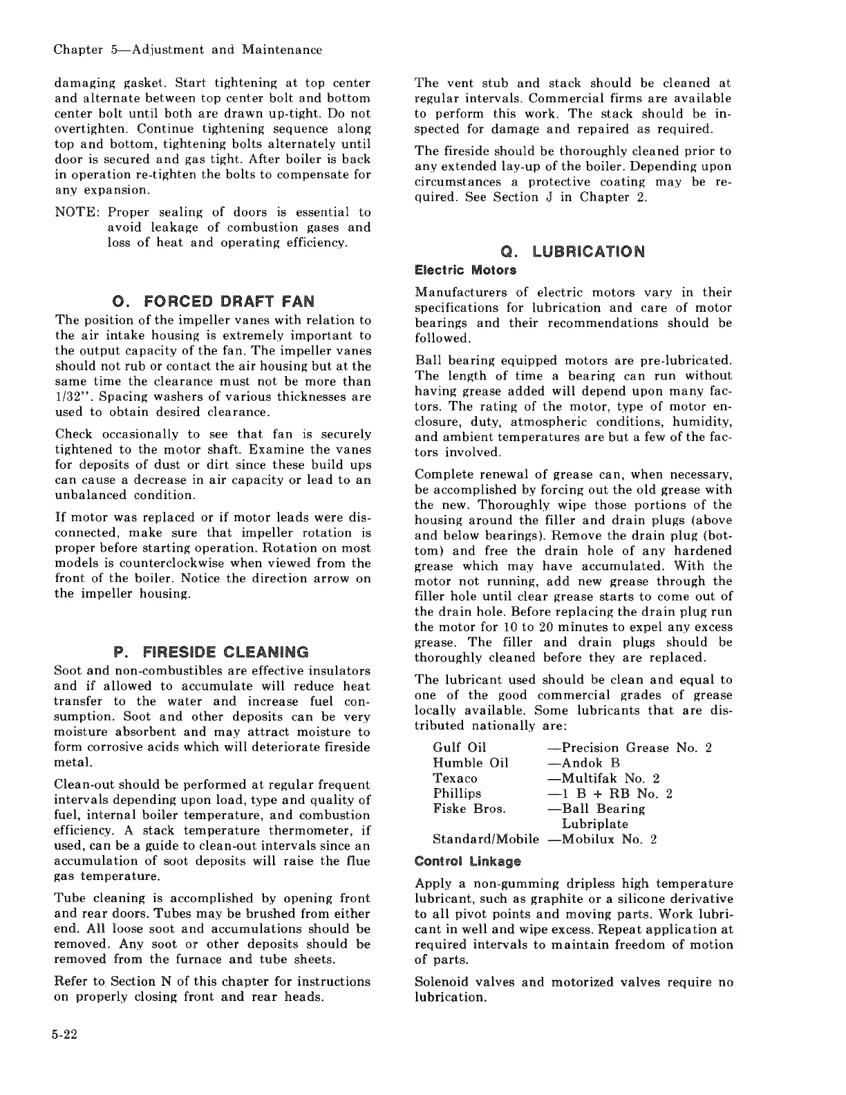 Cleaver-Brooks CBH 40 - Forced Draft Fan; Fireside Cleaning; Lubrication