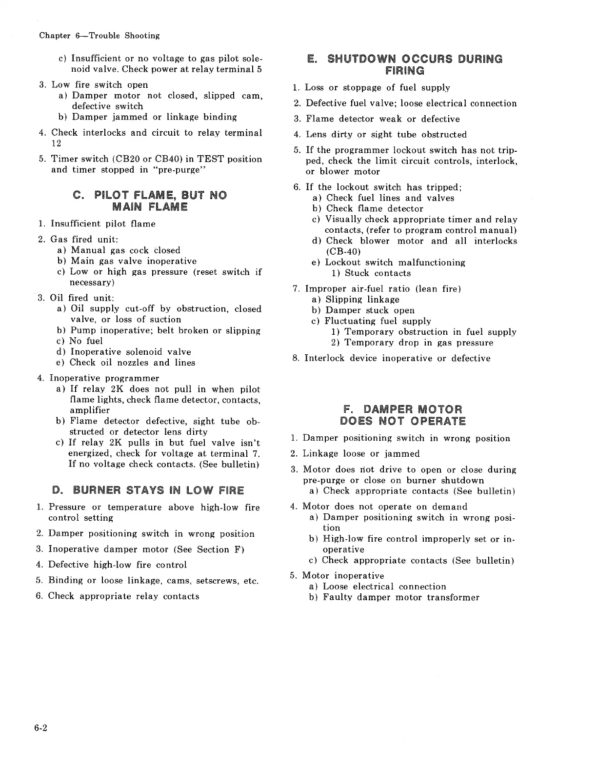 Cleaver-Brooks CBH 40 - C. PILOT FLAME, BUT NO MAIN FLAME; E. SHUTDOWN OCCURS DURING FIRING