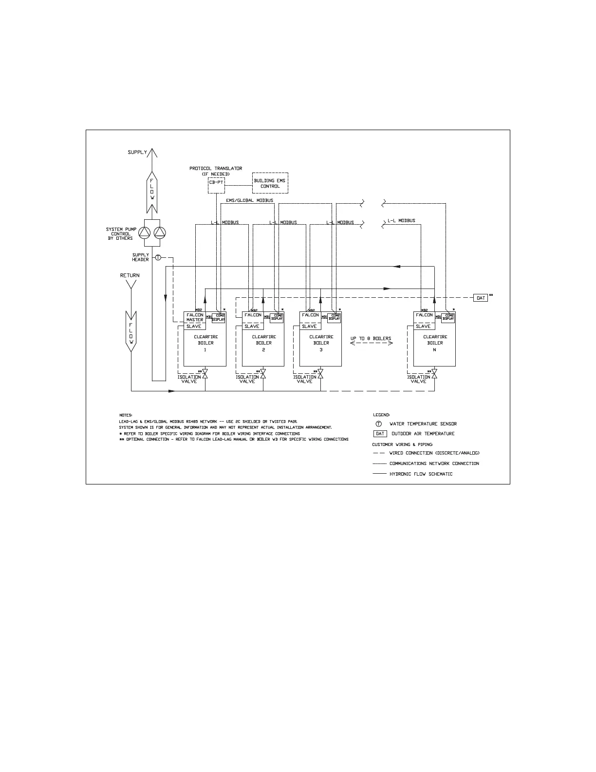 Figure 9 - Falcon Lead Lag with outdoor reset and EMS for remote comms/monitoring