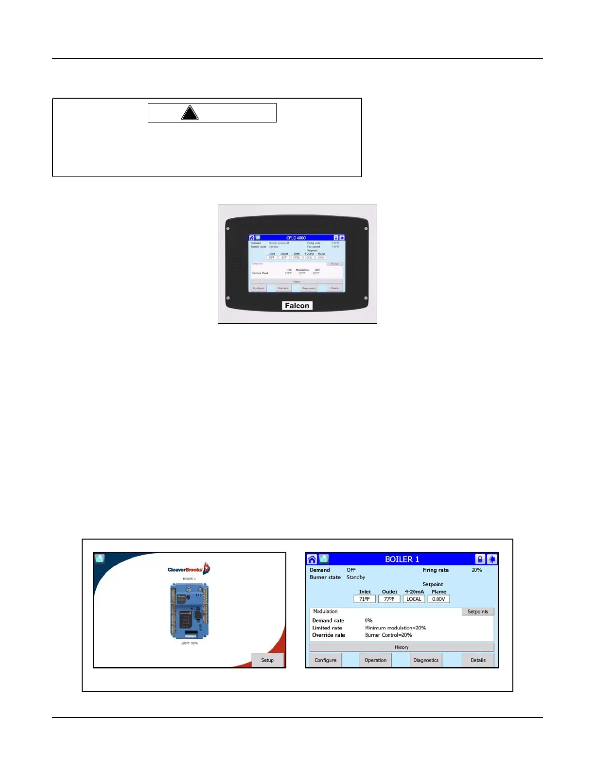 Apply power to the boiler. The Home page will appear on the Falcon display.