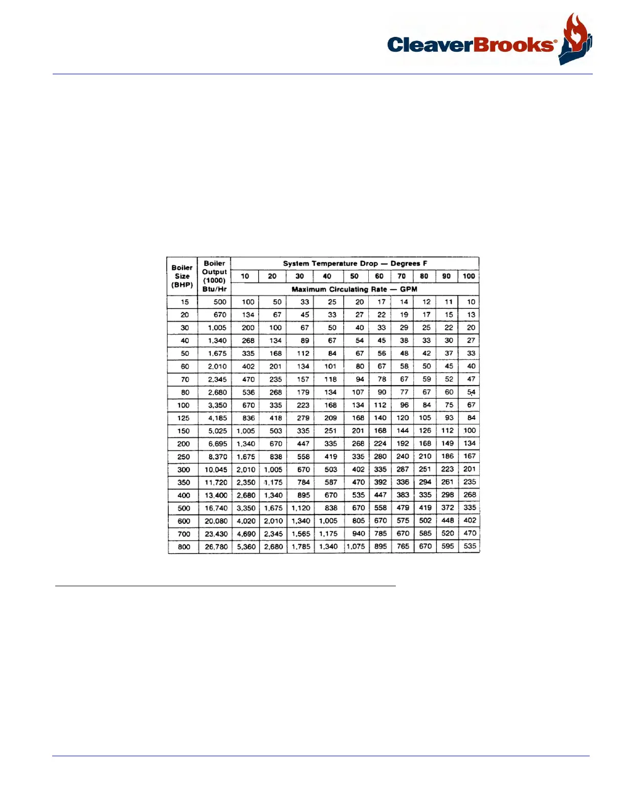 A rule of thumb of 1/2 to 1 G.P.M. per boiler horsepower can be used to determine the minimum continuous flow