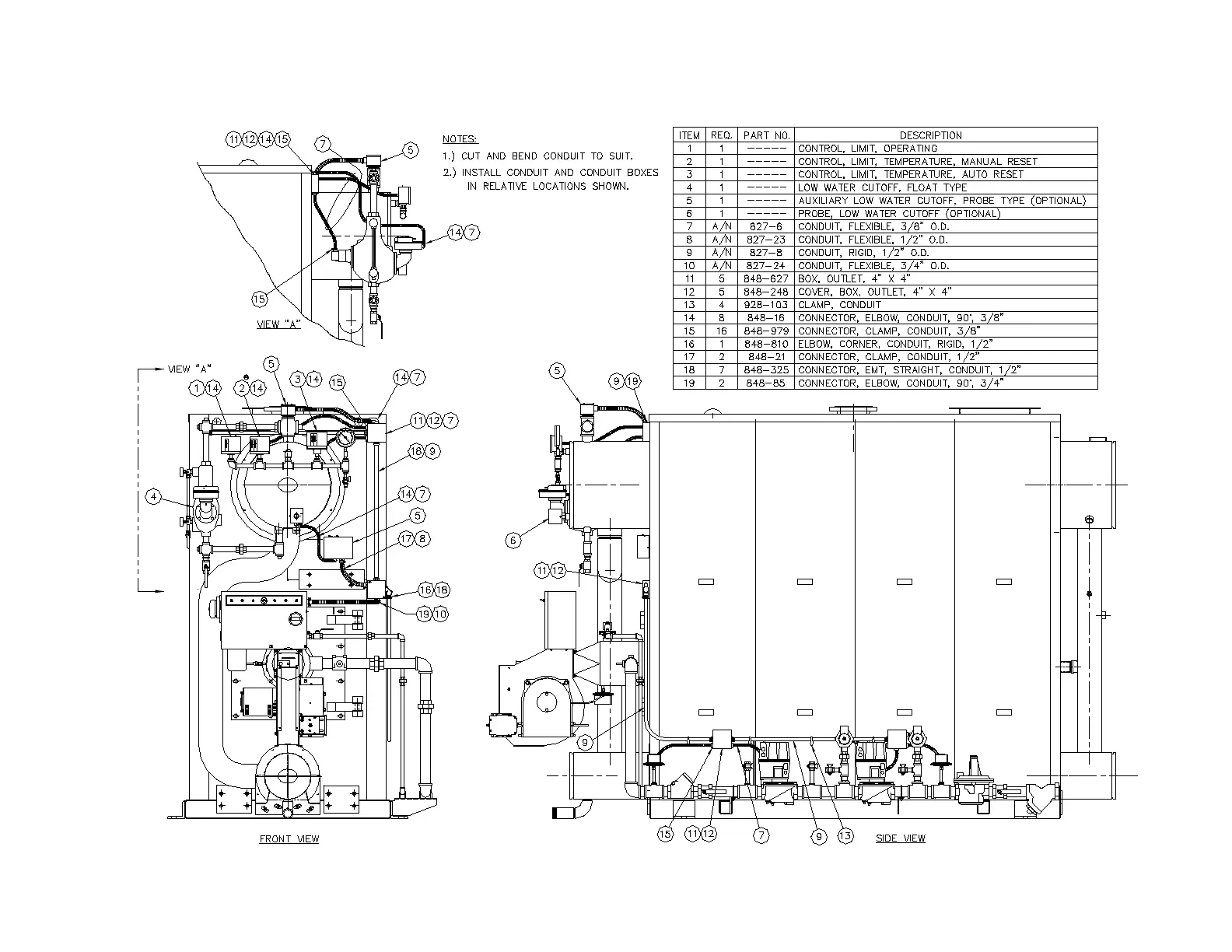 Figure 4-6. Typical conduit layout - ProFire burner on a steam Flextube boiler