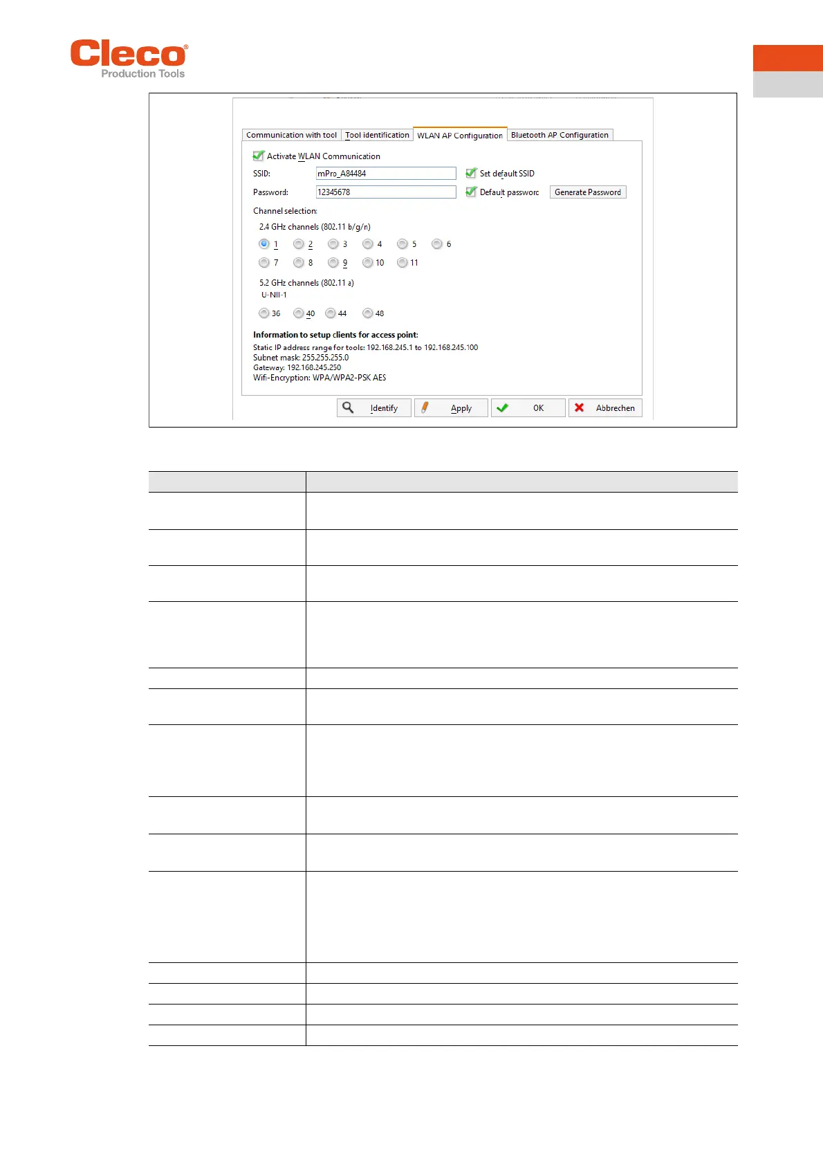Information to setup clients for access point: