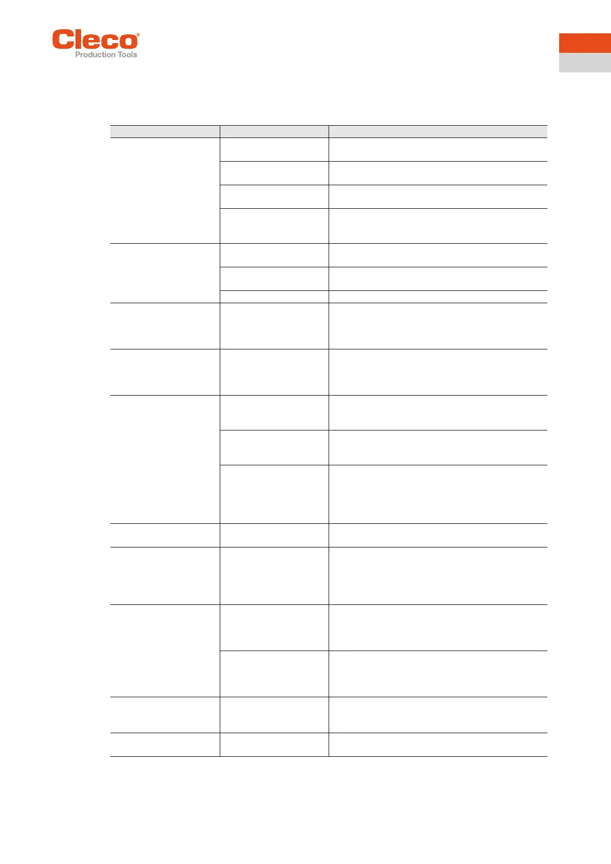 Tool not recognized Software incorrect Check controller software / measuring board