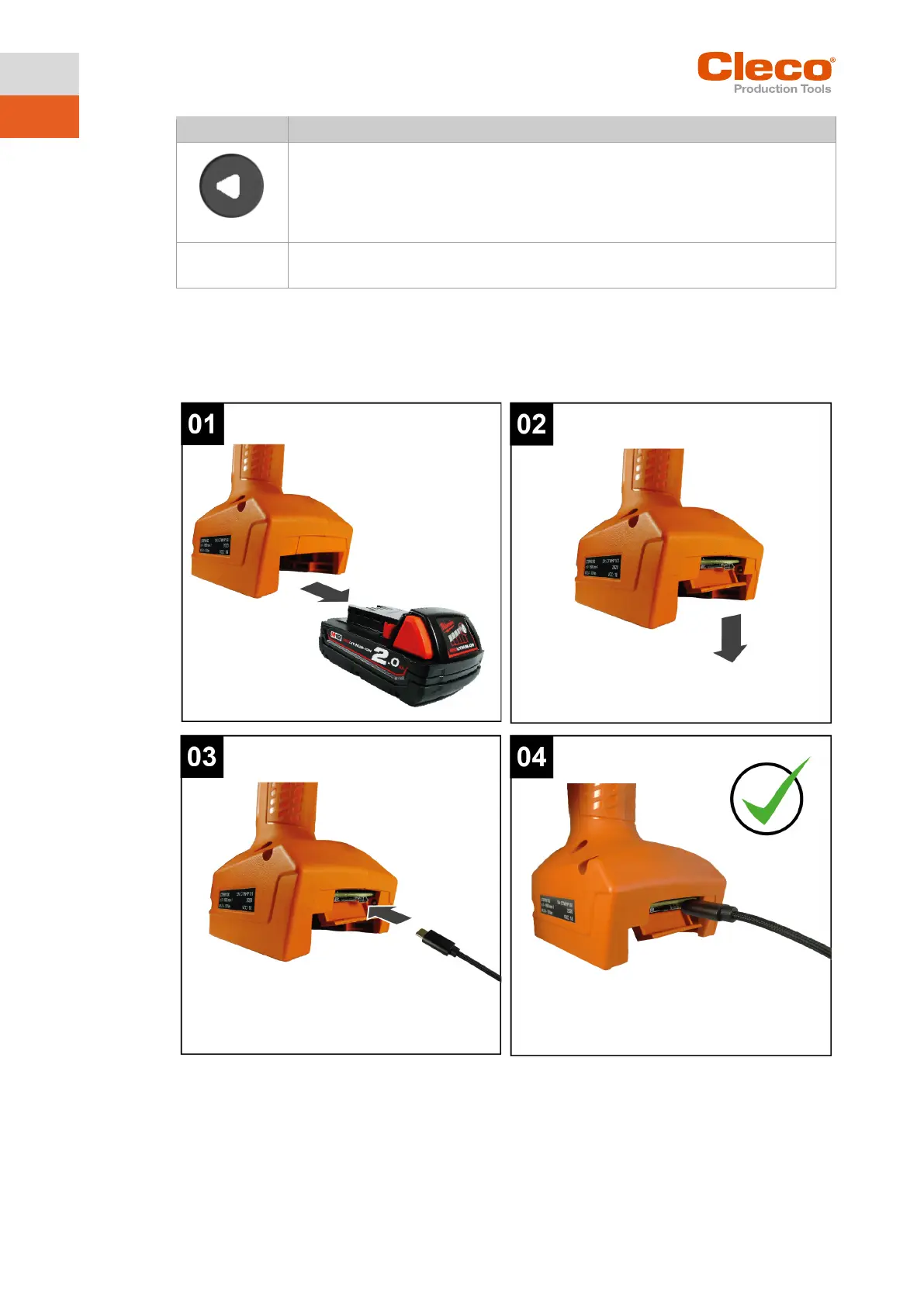 Connection for a Micro B USB cable to connect the tool to an external device interface.