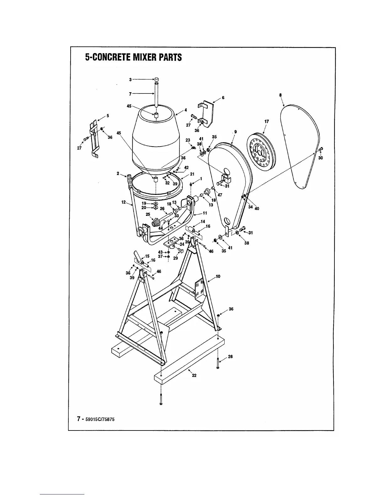 Cleform Gilson 59015C - Concrete Mixer Parts List; Parts Diagram and Identification