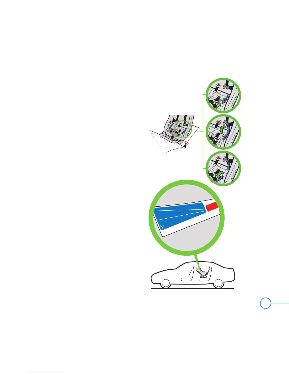 Child seat is properly reclined in Rear-Facing mode when the line