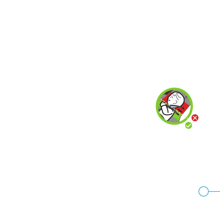 positioned through Shoulder Harness Slots above the top of the child’s shoulders.