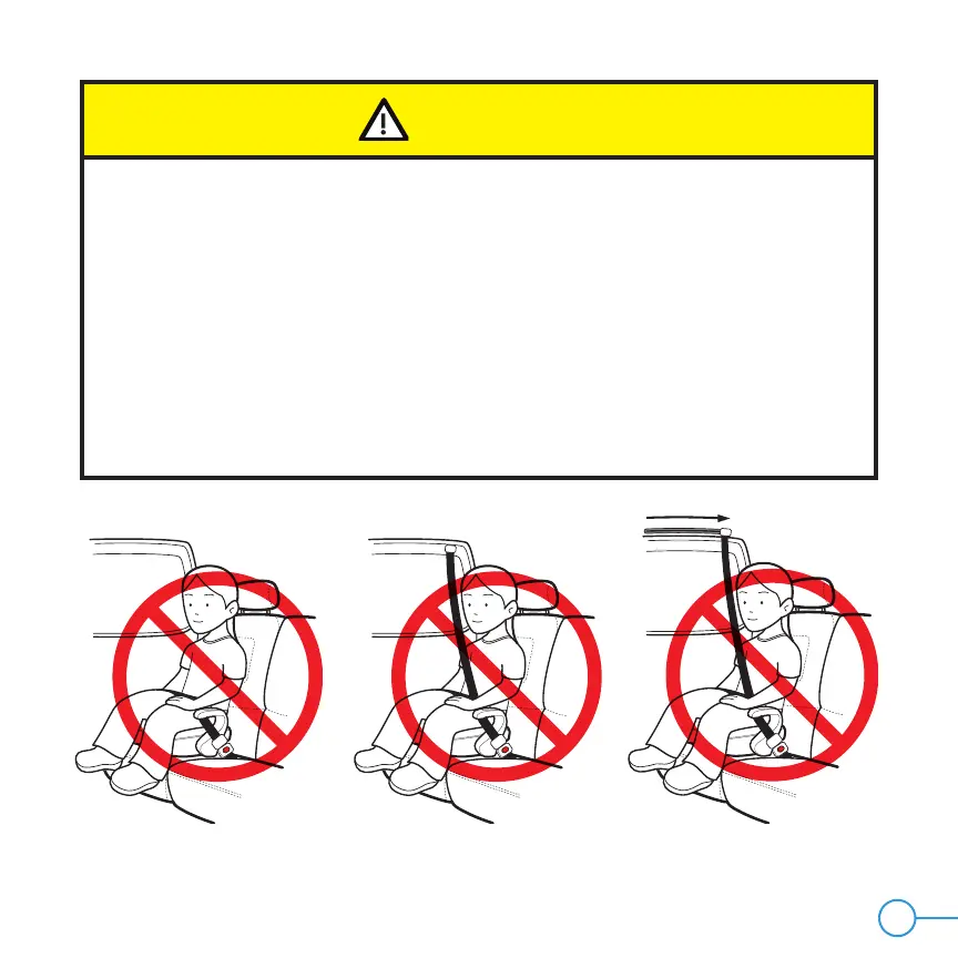 • NEVER use vehicle belts that are attached to the door in any way or that move