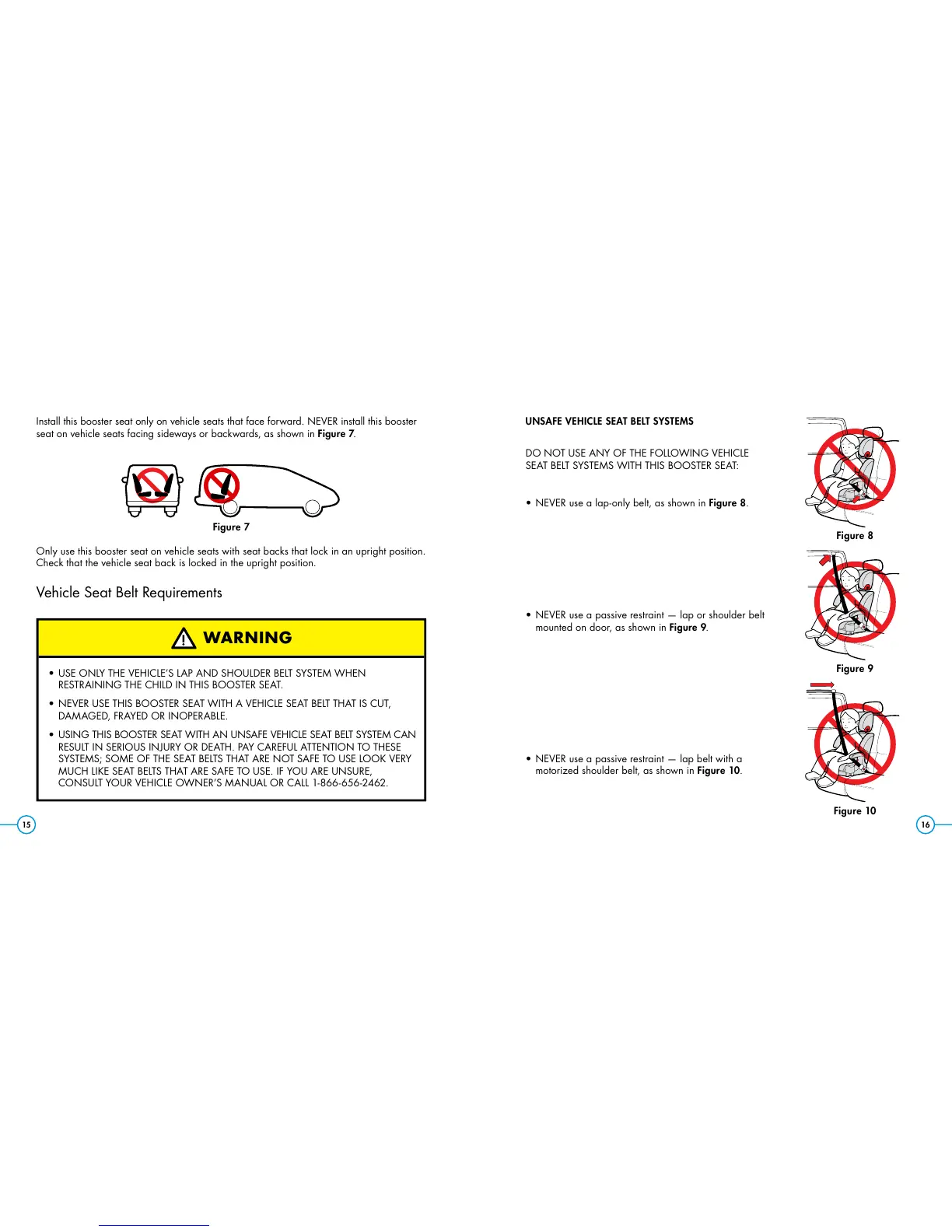 Install this booster seat only on vehicle seats that face forward. NEVER install this booster