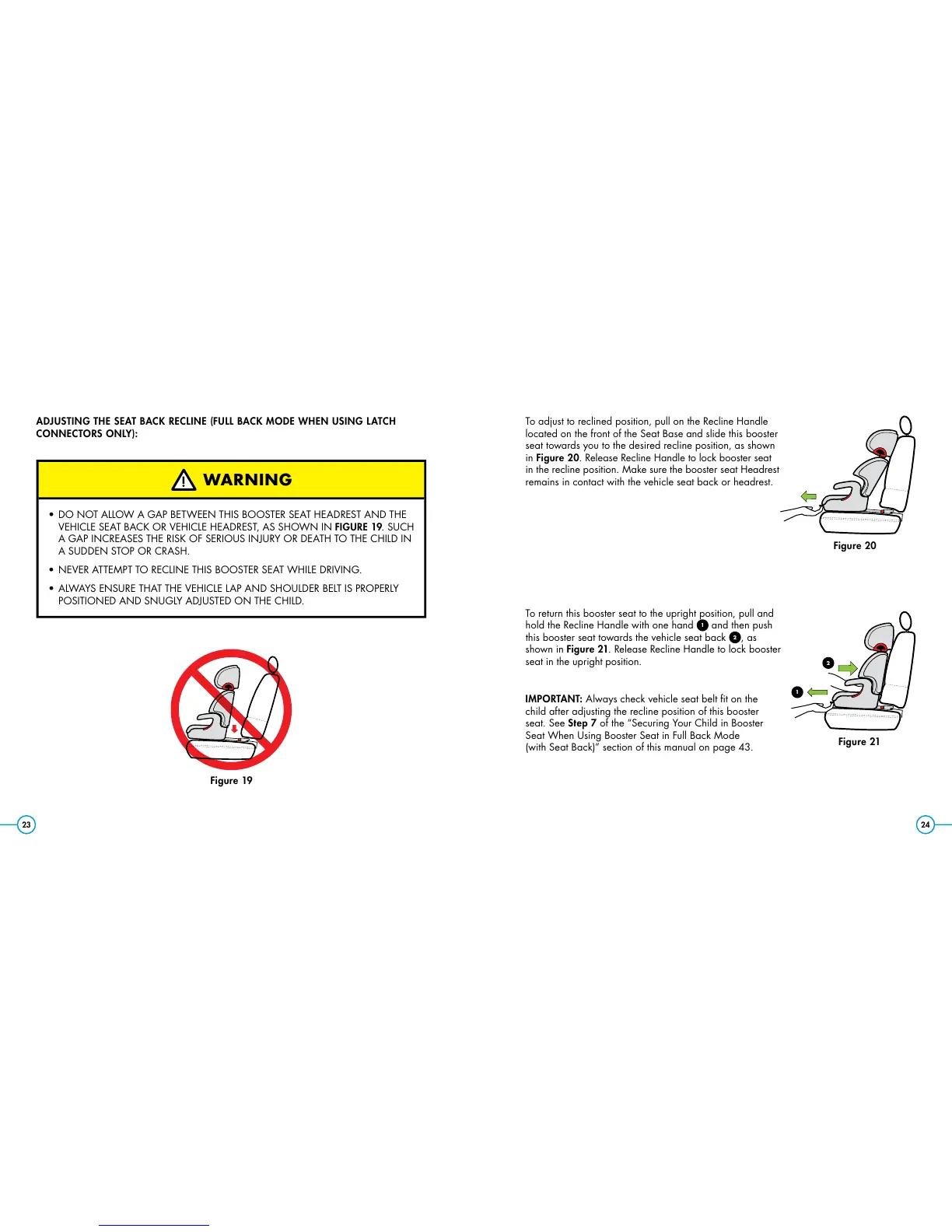 in Figure 20. Release Recline Handle to lock booster seat