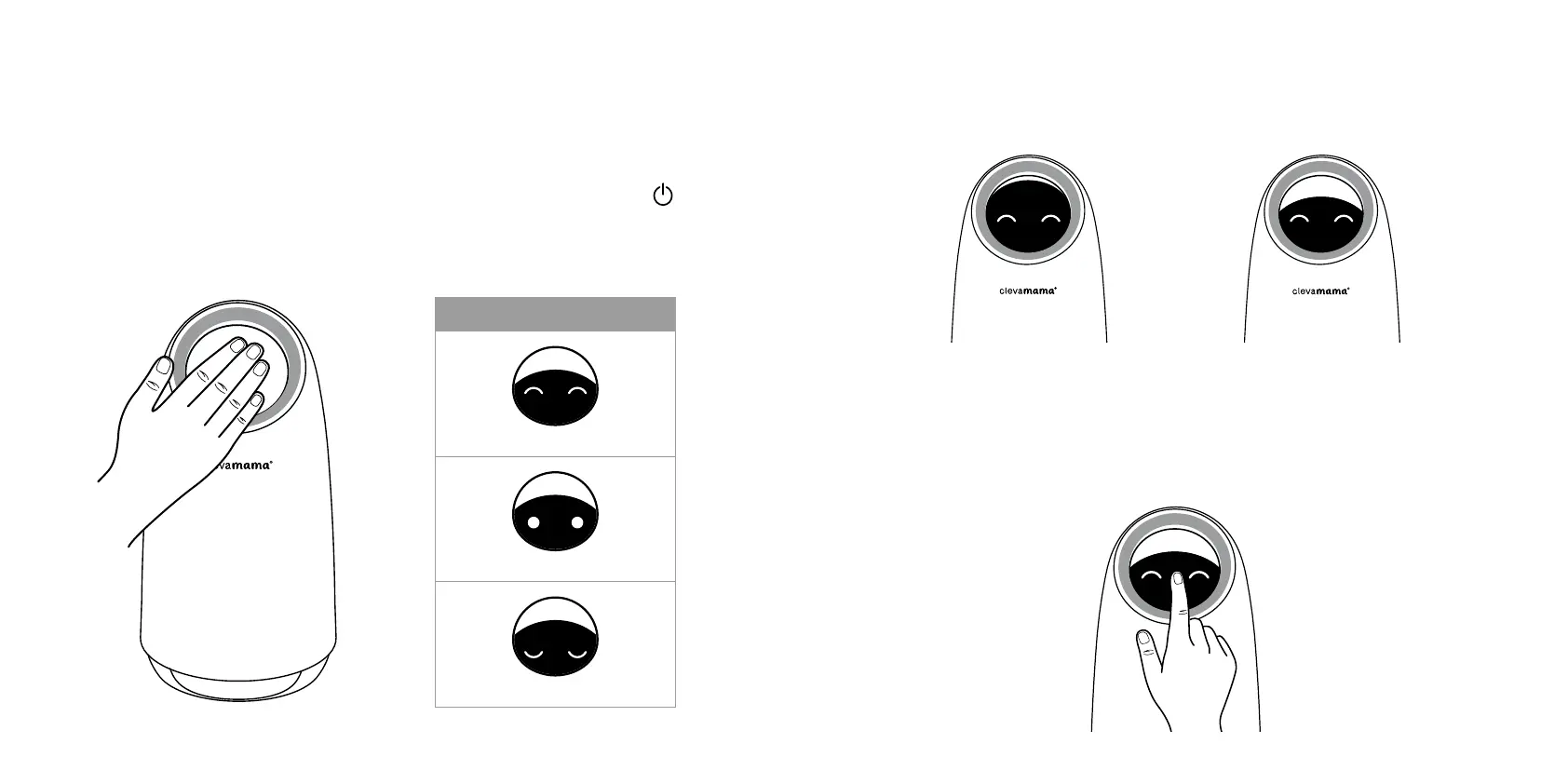 A ClevaPure™ légtisztító kikapcsolásához érintse meg a kikapcsoló gombot (a szemek