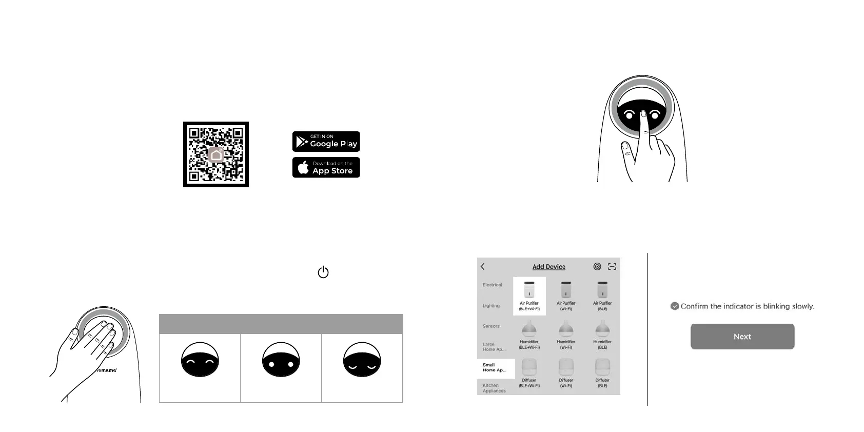 air purifier will enter into pairing mode and its eyes will start flashing.