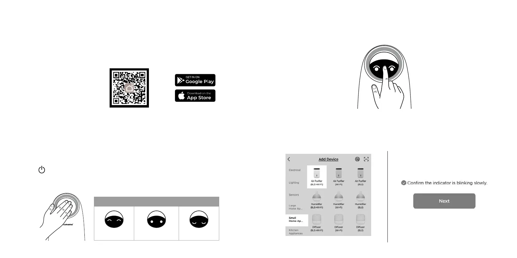 luchtreiniger gaat in de koppelingsmodus en de ogen beginnen te knipperen.