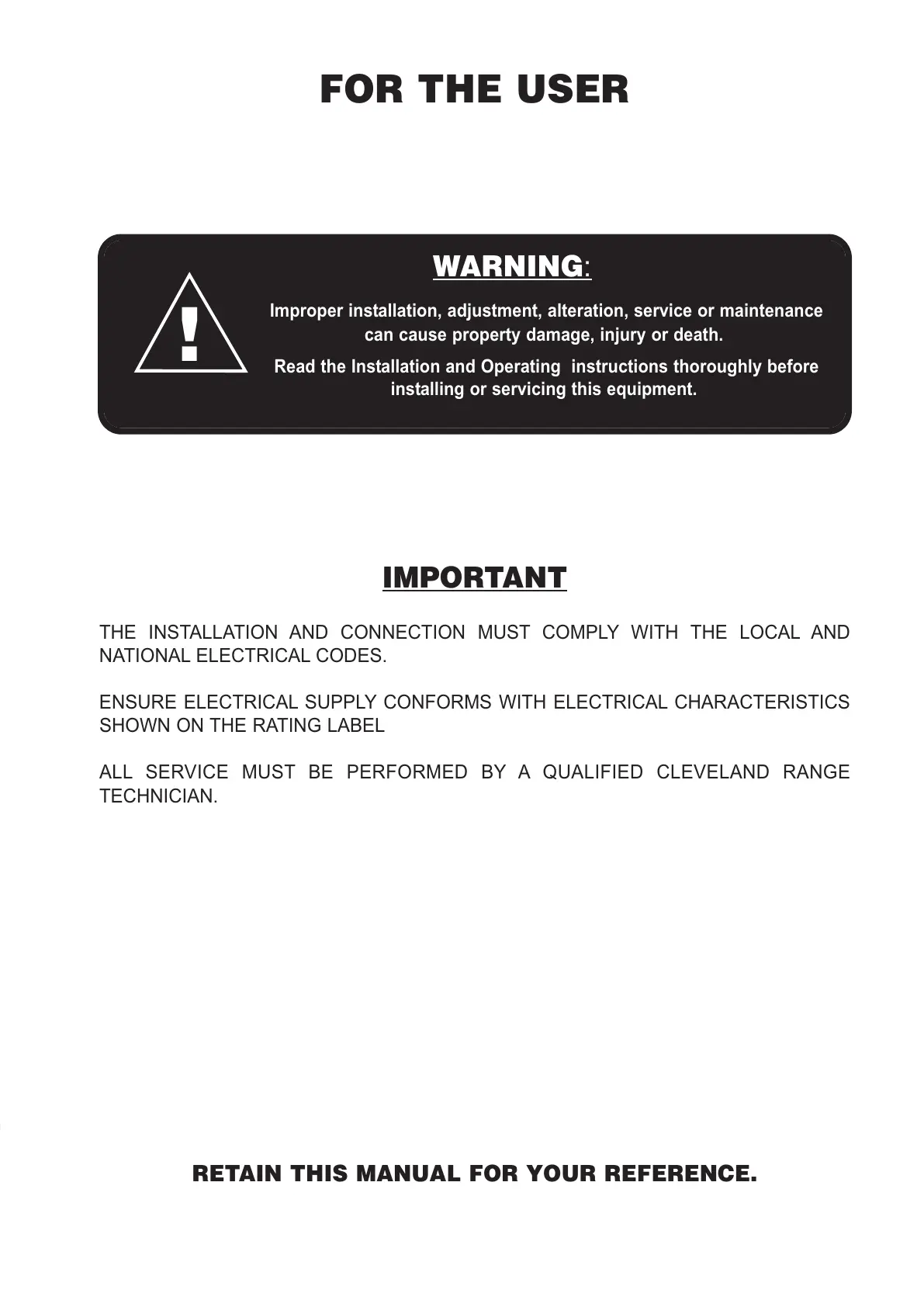 ALL SERVICE MUST BE PERFORMED BY A QUALIFIED CLEVELAND RANGE