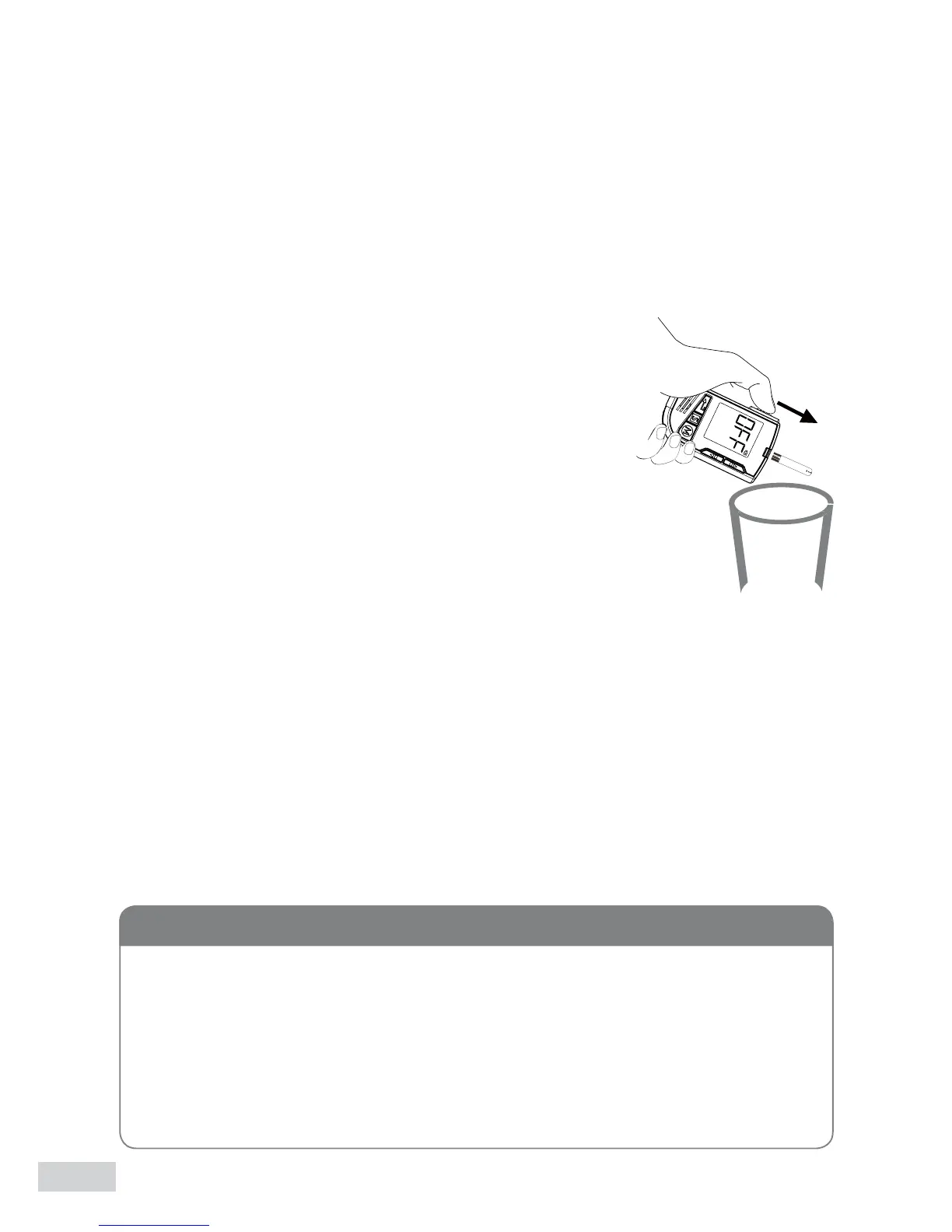 To eject the test strip, point the strip at a disposal container for sharp