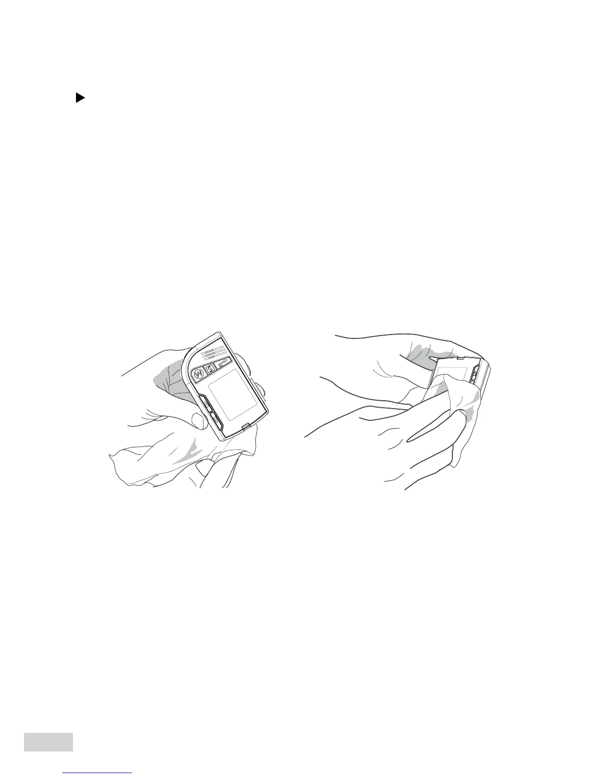 2. Wipe all meter’s exterior surface display and buttons. Hold the