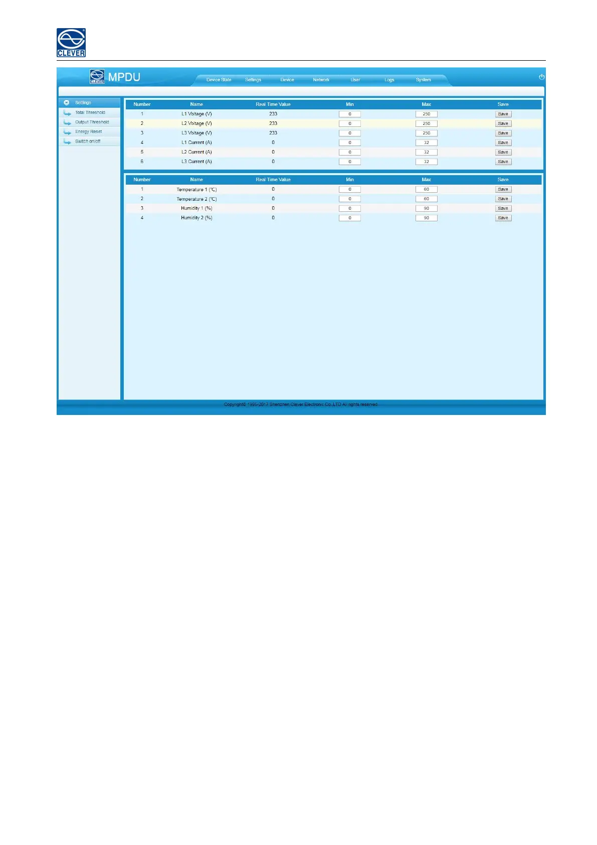2). Individual outlet threshold settings: