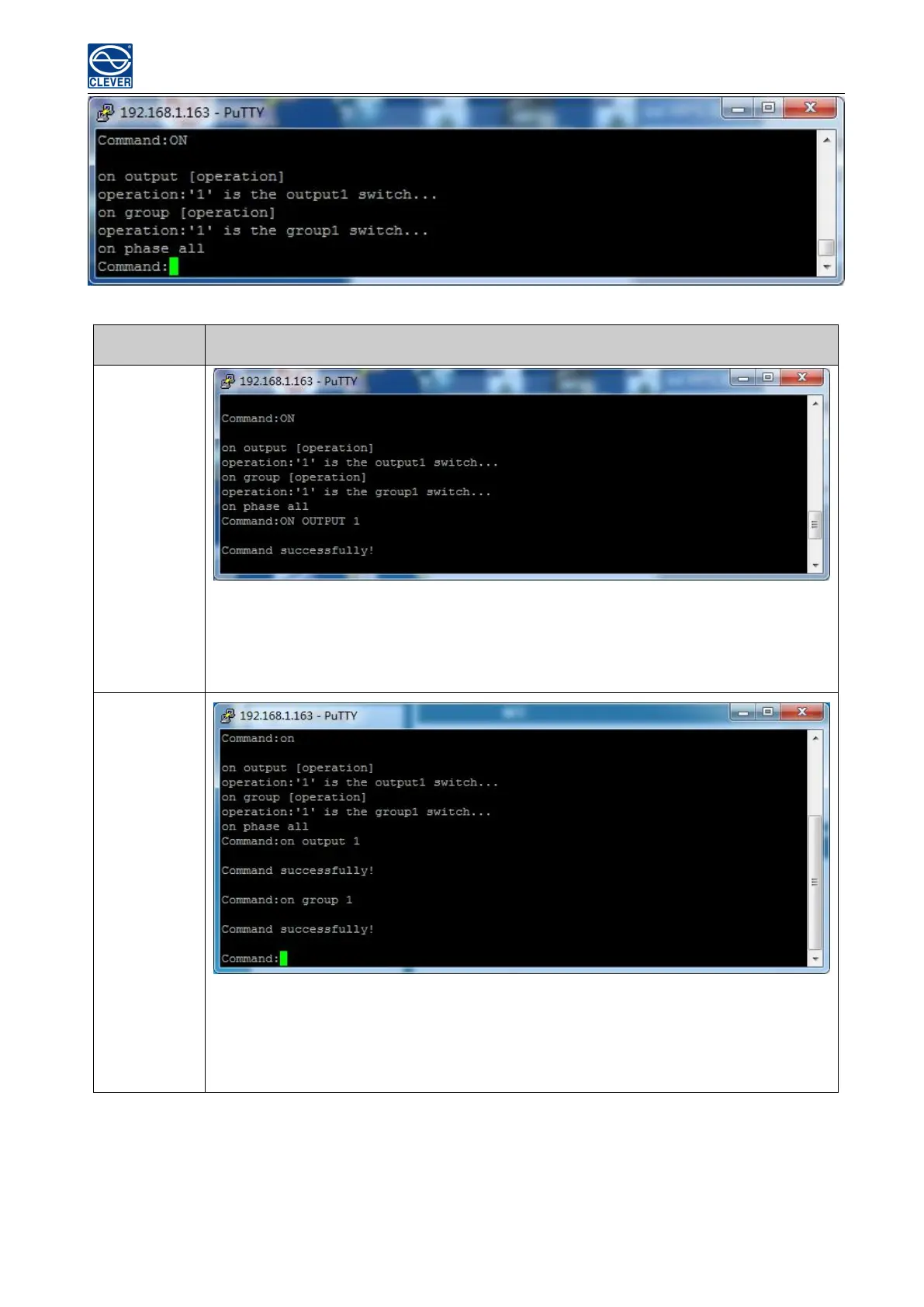 Enter command line: on group 1 to switch on outlet from branch circuit 1;