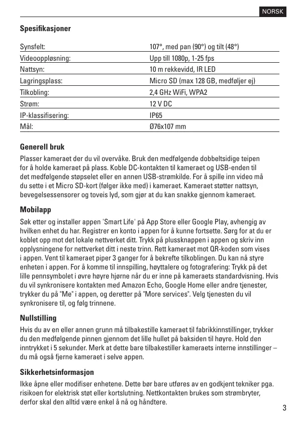 bevegelsessensorer og toveis lyd, som gjør at du kan snakke gjennom kameraet.