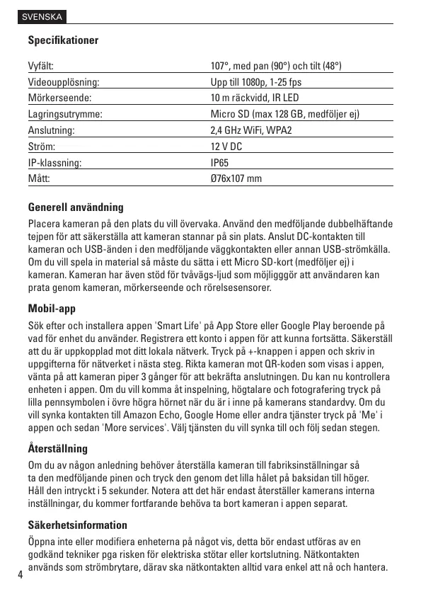 Vyfält: 107°, med pan (90°) och tilt (48°)