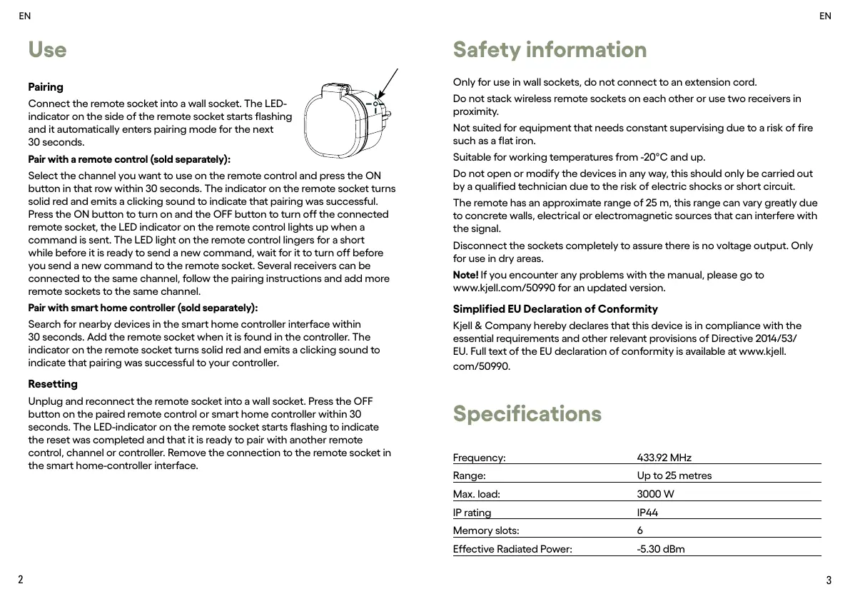 EU. Full text of the EU declaration of conformity is available at www.kjell.