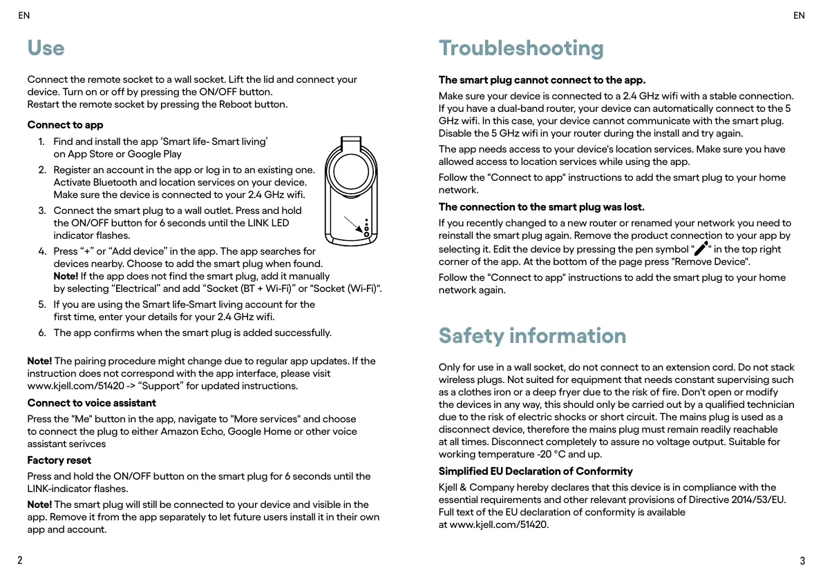 3. Connect the smart plug to a wall outlet. Press and hold