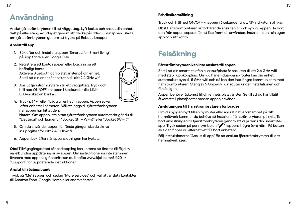 bort anslutningen till fjärrströmbrytaren genom att välja den i din Smart life-