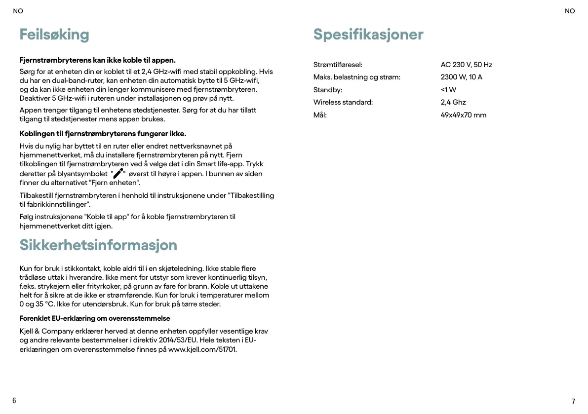 Fjernstrømbryterens kan ikke koble til appen.