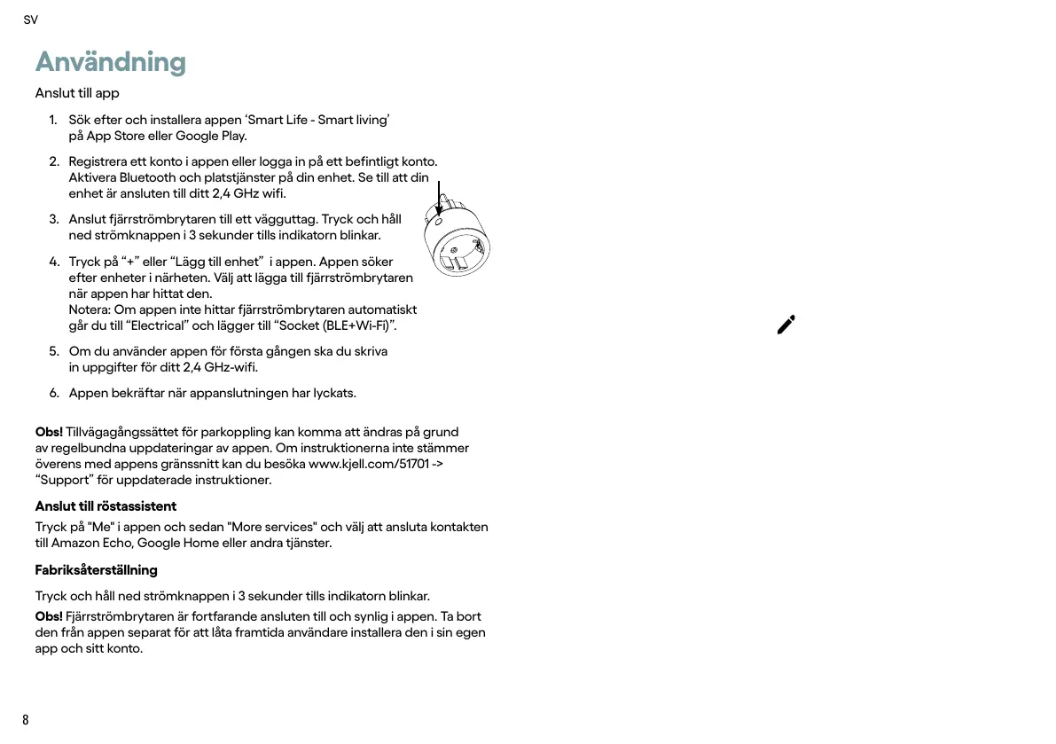 Följ instruktionerna "Anslut till app" för att ansluta fjärrströmbrytaren till ditt