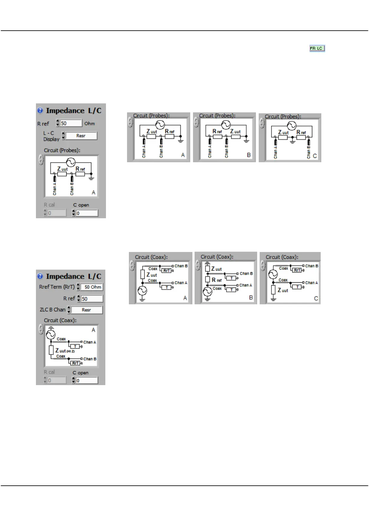 Use this panel to measure impedance, capacitance and inductance vs
