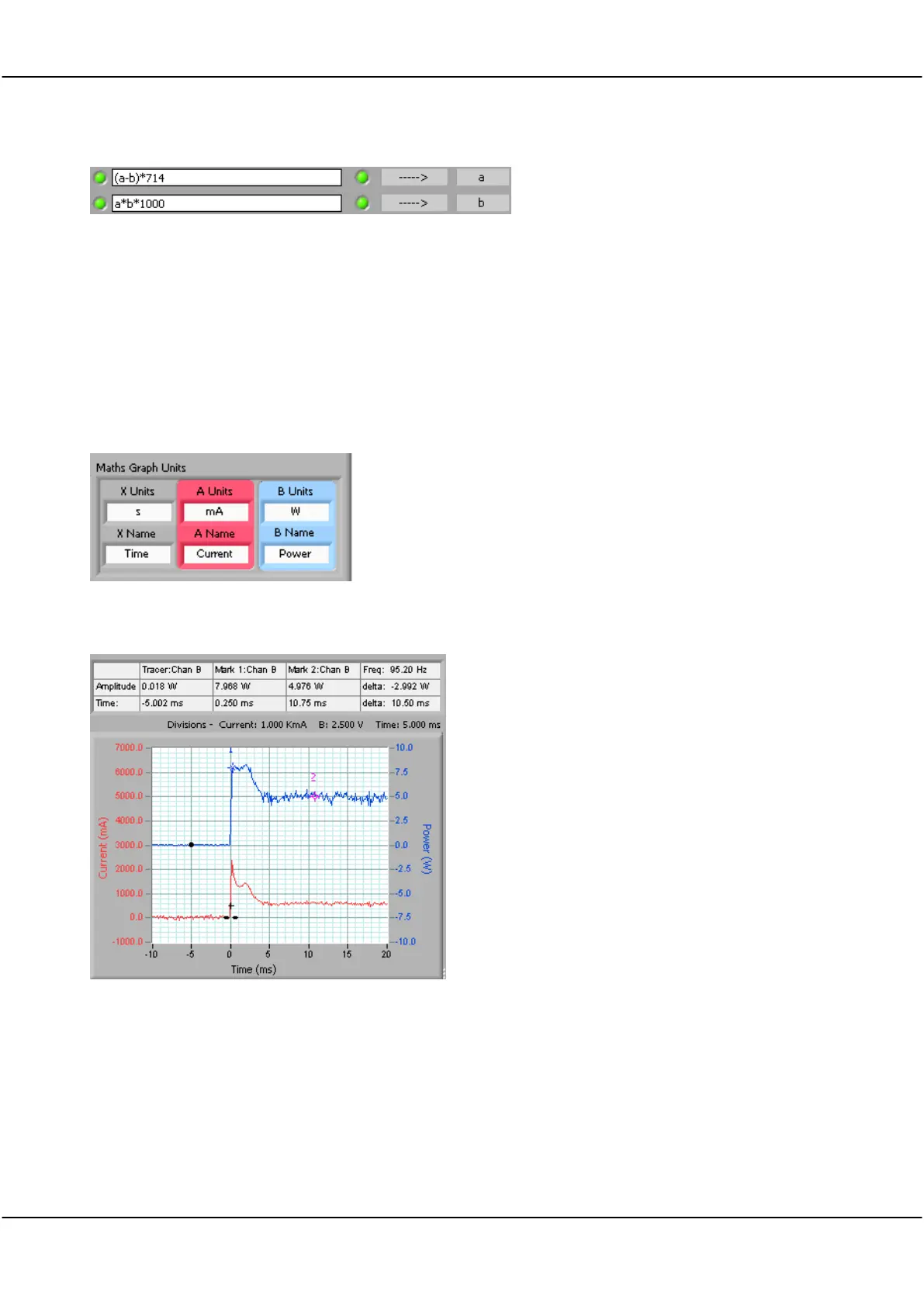 The graph shows the results of the Maths, first multiplying B x A B to get Watts in the B channel, and then