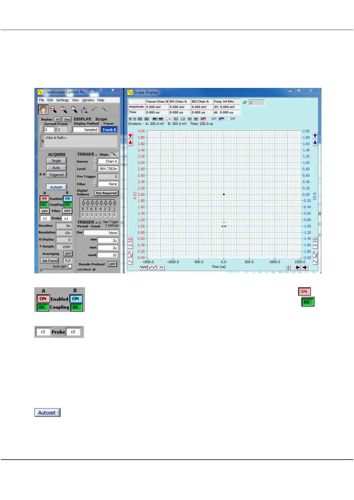 Click to automatically scale the Scope Display and automatically set the trigger settings