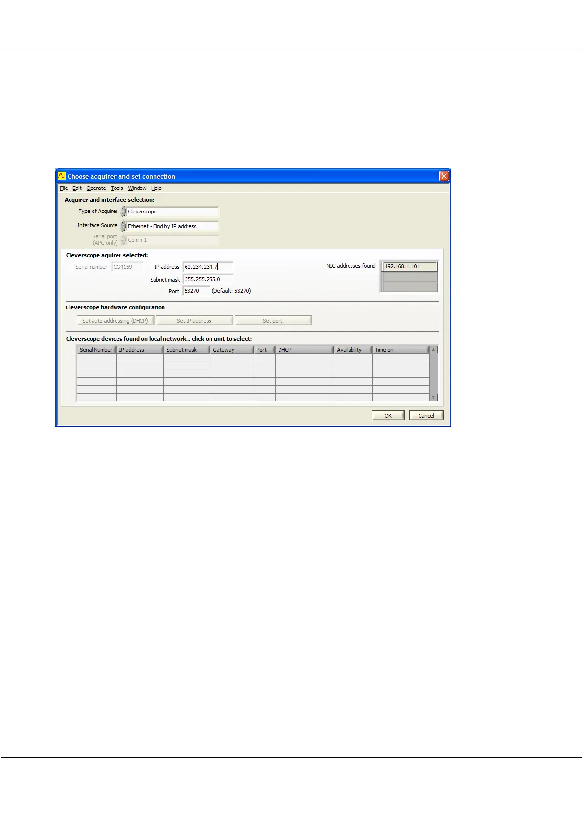 Set Interface Source to Ethernet – Find by IP address.
