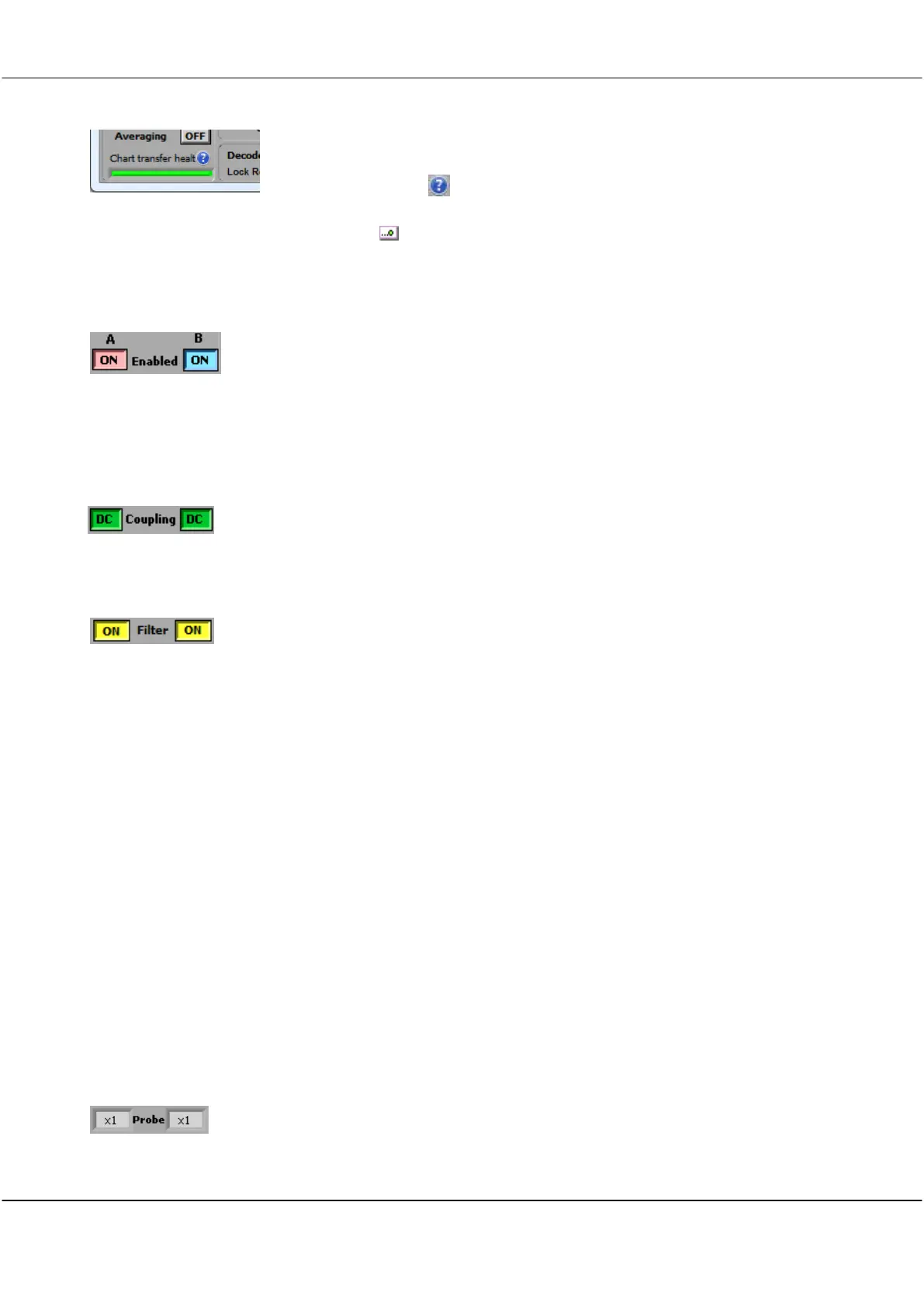 Click button to toggle channels to DC Coupled or AC Coupled.
