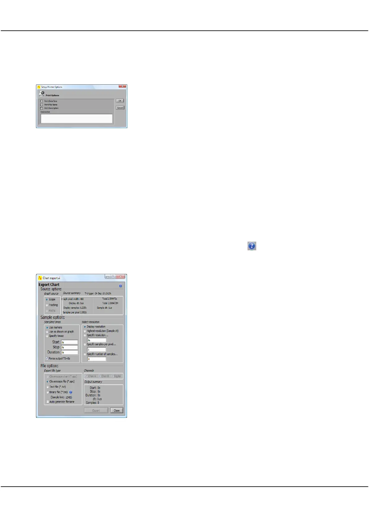 Export Chart is used to export charting data in different formats. Clicking Help ( ) expands the window to