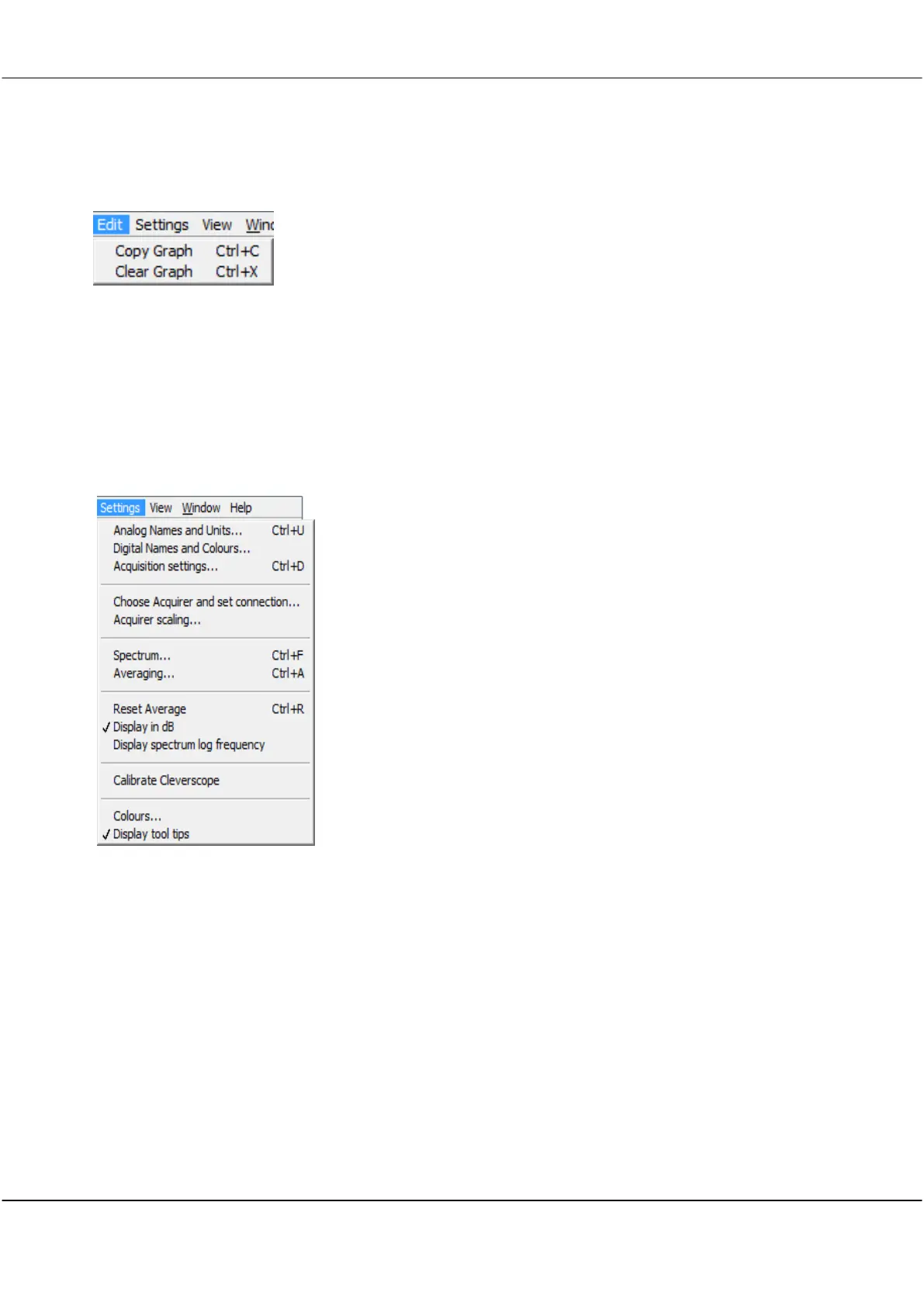 The Settings menu contains all the options, preferences, and settings related to the acquiring and analysis of