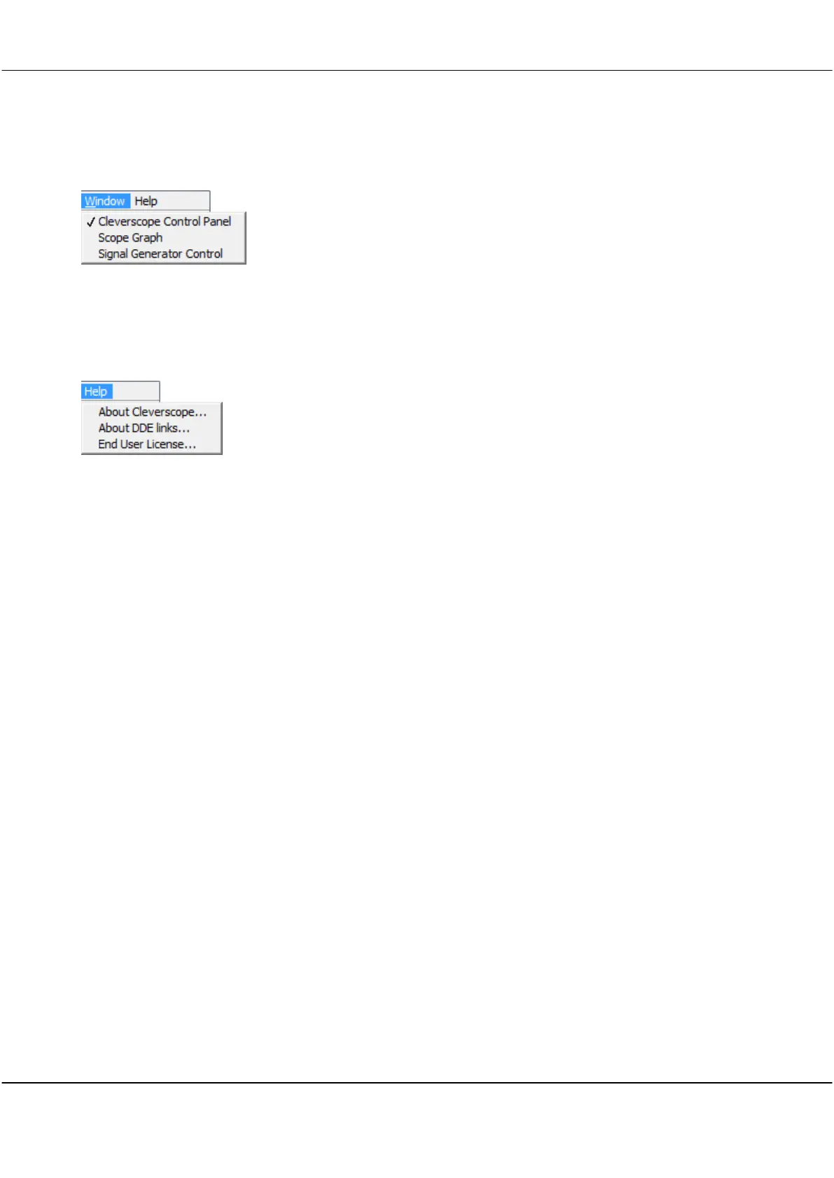 Click on one of the Cleverscope displays listed in the menu to bring it to the front