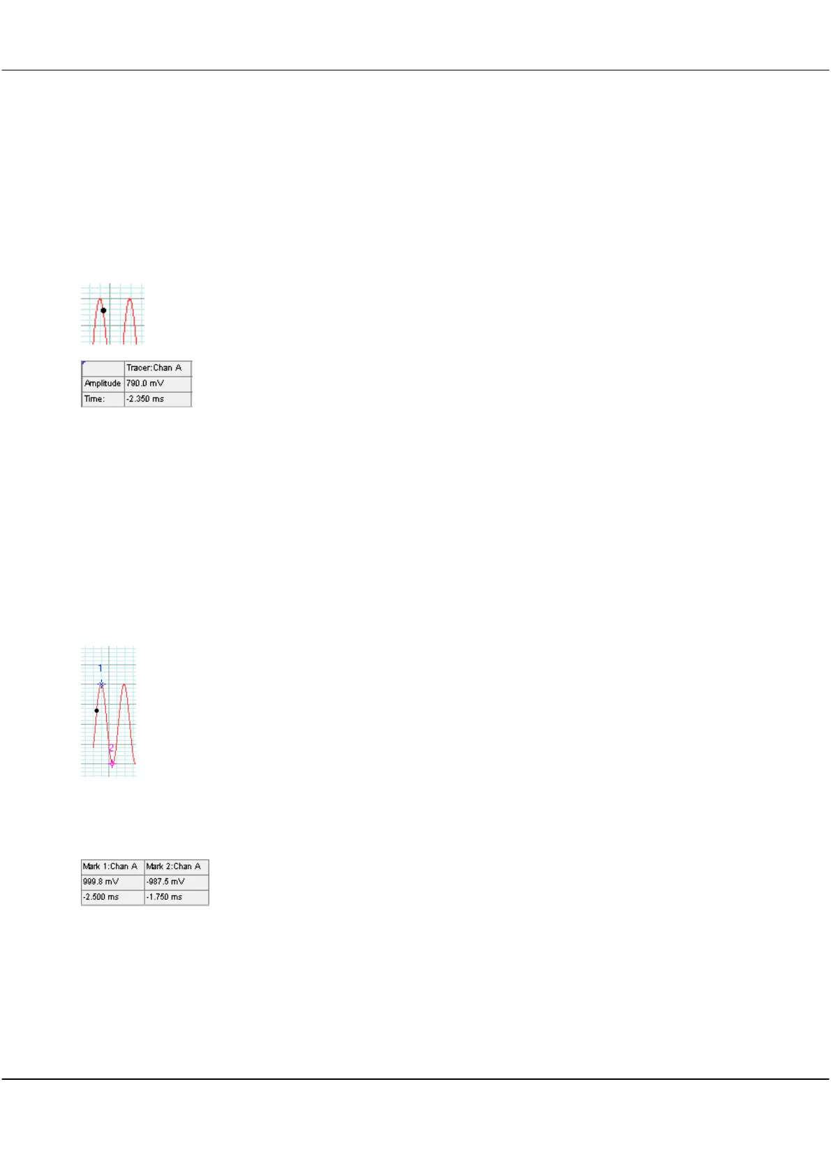 The voltage level and position in time corresponding to the tracer position is displayed